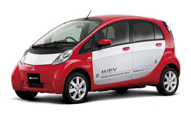 Πρώτο δείγμα αποτελεί το i-MiEV, ένα αμιγώς ηλεκτρικό όχημα για αστικές κυρίως μετακινήσεις με μηδενικές εκπομπές ρύπων. Σύμφωνα με τη Mitsubishi, ακόμη και αν ληφθούν υπόψη οι εκπομπές CO2 από τη διαδικασία παραγωγής της ενέργειας που χρειάζεται για τη φόρτιση της μπαταρίας του, εκπέμπει μόλις το 30% περίπου των εκπομπών CO2 ενός αντίστοιχου βενζινοκίνητου αυτοκινήτου πόλης. Η σύγκριση αυτή δεν είναι δύσκολη, καθώς το i-MiEV βασίζεται στο τεράθυρο i που διατίθεται στην ιαπωνική αγορά με βενζινοκινητήρα 660 κ. εκ. Αντίστοιχη είναι η διαφορά που ανακοινώνει η εταιρεία στο κόστος χρήσης, με το i-MiEV να απαιτεί από το ένα-τρίτο μέχρι και το ένα-ένατο συγκριτικά με το i!