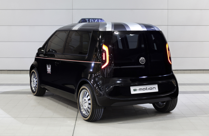 Η Volkswagen παρουσίασε την δική της πρόταση για το διάσημο London Taxi. Βασισμένο στο πάτωμα του Up!, το πρωτότυπο concept ταξί έχει μήκος 3,73 μέτρα, λίγο μικρότερο από το Fox και μπορεί να φιλοξενήσει δύο επιβάτες στο πίσω κάθισμα, ενώ υπάρχει και χώρος για αποσκευές. Η πρόταση δεν ακολουθεί ακριβώς τις απαιτήσεις που θέτουν οι Αγγλικοί κανόνες για τα χαρακτηριστικά ταξί του Λονδίνου, όμως παρουσιάζει την τάση που υπάρχει για τα αυτοκίνητα που θα εκτελούν μεταφορικό έργο στα αστικά κέντρα και θα πρέπει να είναι μηδενικών εκπομπών. Για τη σχεδίαση του VW London Taxi εργάστηκε προσωπικά ο Klaus Bischoff επικεφαλής του σχεδιαστικού τμήματος της εταιρείας. Στο πρωτότυπο έχει τοποθετηθεί μία συστοιχία μπαταριών ιόντων λιθίου με χωρητικότητα 45kWh και ένας ηλεκτροκινητήρας με απόδοσης 115 ίππους. Το πρωτότυπο έχει αυτονομία 300 km, φορτίζει από μια απλή πρίζα ενώ για το 80% της φόρτισης απαιτείται μόλις μία ώρα.
