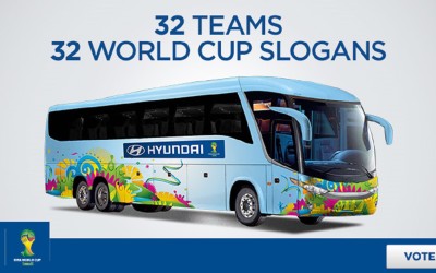 Για το επερχόμενο Παγκόσμιο Κύπελλο Ποδοσφαίρου, η Hyundai που είναι και βασικός χορηγός, υποστηρίζει άλλη μια εξαιρετική ενέργεια που έχει να κάνει με τα συνθήματα που θα κοσμούν τα πούλμαν των Εθνικών ομάδων στη Βραζιλία