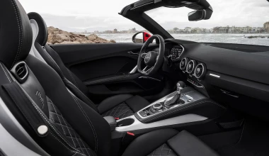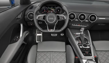 Στο εσωτερικό, η εικόνα είναι «λιτή» για τα δεδομένα της εποχής, με το σύστημα ΜΜI στην πιο σύγχρονη εκδοχή του να δίνει πρόσβαση στις επιμέρους λειτουργίες. Στον εξ ολοκλήρου ψηφιακό πίνακα των οργάνων φιλοξενείται η οθόνη στην οποία προβάλλονται όλες οι απαραίτητες ενδείξεις και πληροφορίες. Μάλιστα, ο οδηγός έχει δύο επιλογές απεικόνισης των ενδείξεων: μια κλασική με μεγάλα όργανα και μία περισσότερο εστιασμένη στην ψυχαγωγία! Η κατάργηση της οθόνης από την κεντρική κονσόλα έδωσε την ευκαιρία στους σχεδιαστές της μάρκας να παίξουν πιο ελεύθερα με τα σχήματα, επιλέγοντας για την περίπτωση του ΤΤ τρεις κυκλικούς αεραγωγούς ως κυρίαρχο στοιχείο, οι οποίοι μάλιστα στο κέντρο τους φιλοξενούν και κάποιες επιπλέον ενδείξεις.