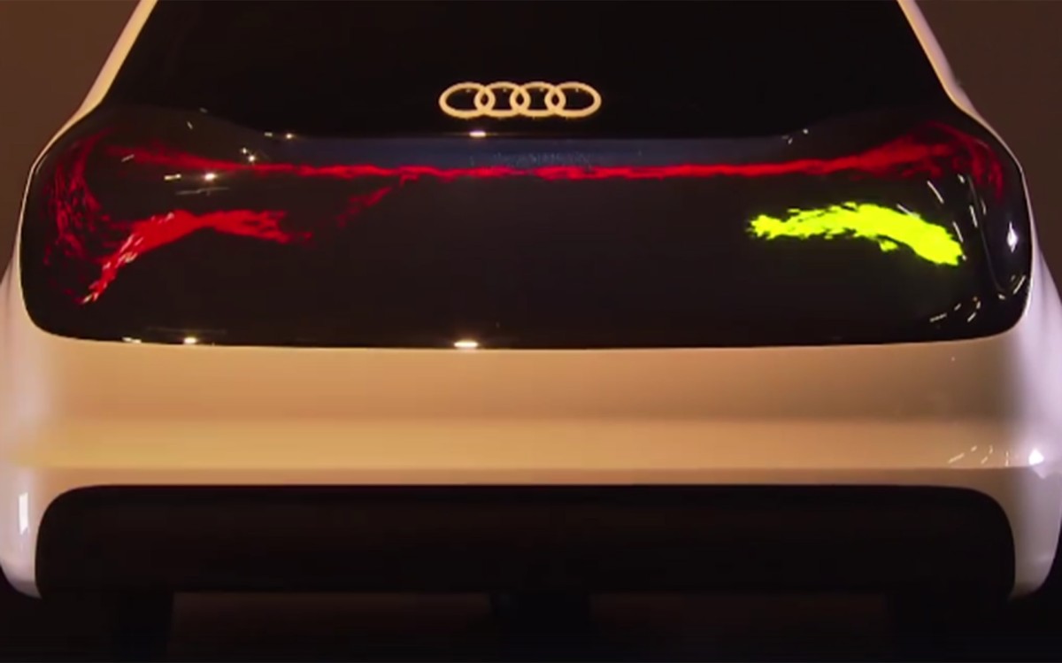 Ένα εντυπωσιακό concept παρουσιάστηκε από την Audi, χωρίς αυτό να σημαίνει ότι θα το δούμε στο άμεσο μέλλον και στα αυτοκίνητα που θα κυκλοφορούν. Παρόλ’ αυτά, είναι πολύ εντυπωσιακά, μιας και αντιδρούν με τις πραγματικές συνθήκες του αυτοκινήτου. Για παράδειγμα, αν το αυτοκίνητο κινείται με υψηλή ταχύτητα, η ροή του χρώματος δυναμώνει ή κατά τις στροφές τα φώτα ακολουθούν «εικονικά» την πορεία του αυτοκινήτου. Η επιφάνεια είναι ενιαία και αποτελείται από πολλά φωτάκια OLED, που επικοινωνούν πολύ καλύτερα με τους οδηγούς που ακολουθούν.