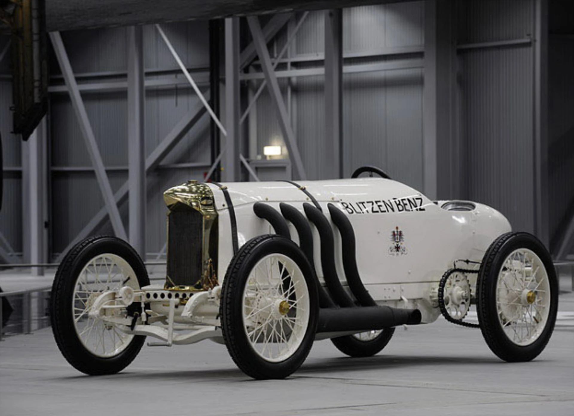 Πρώτα από όλα, ονομάζεται μόνο Benz, γιατί οι δύο εταιρείες (η Mercedes με τη Benz) ενώθηκαν το 1926 και εδώ βρισκόμαστε μόλις στα 1909. Ήταν άλλωστε και το πρώτο αυτοκίνητο της Benz που ξεπερνούσε τους 200 ίππους και στόχος του ήταν να καταρρίψει το ρεκόρ των 200 χιλιομέτρων την ώρα. Εκτός όμως από ίππους, ήταν και η πρώτη φορά που οι σχεδιαστές πήραν στα σοβαρά την αντίσταση του αέρα. Το αυτοκίνητο σχεδιάστηκε όσο πιο στενό γινόταν και ουσιαστικά υπάρχει μόνο ένα κάθισμα και κάτι, για τον κακόμοιρο τον μηχανικό που ήταν απαραίτητος, αφού δούλευε ασταμάτητα τροφοδοτώντας τον κινητήρα με λάδι μέσω μιας χειροκίνητης τρόμπας! Επίσης, ο μοχλός ταχυτήτων και του χειρόφρενου ήταν τοποθετημένοι εξωτερικά σε μια προσπάθεια να μειωθεί το πλάτος ακόμα περισσότερο. Ο κινητήρας προέρχονταν από τον αγωνιστικό των 15,5 λίτρων που απέδιδε 150 ίππους, αλλά όπως είπαμε οι μηχανικοί ακολούθησαν το δρόμο της αύξησης του κυβισμού ώστε να αυξήσουν τους ίππους στους 200. Το κιβώτιο ταχυτήτων ήταν τεσσάρων σχέσεων (όχι ότι χρειάζονταν, λόγω της τερατώδους ροπής) και η τελική μετάδοση γινόταν με αλυσίδες και γρανάζια, αφού δεν υπήρχαν ακόμα διαφορικά. Το πλαίσιο τέλος, προέρχονταν από αυτό των αυτοκινήτων Grand Prix, αλλά μην περιμένετε ότι ήταν κάτι περισσότερο από δύο παράλληλους δοκούς.