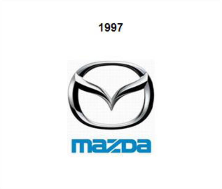 Το συγκεκριμένο λογότυπο παρουσιάστηκε τον Ιούνιο του 1997. Απεικονίζει το «Μ» της Mazda, του οποίου το ευδιάκριτο σχήμα “V” παραπέμπει στο άνοιγμα των φτερών της εταιρίας. Αντιπροσωπεύει την δημιουργικότητα, το αίσθημα της αποστολής και της ζωτικότητας, την επιδίωξη της Mazda για ανάπτυξη και βελτίωση. Το 2000, αυτή η φιλοσοφία ενισχύθηκε με την εισαγωγή του Zoom-Zoom για να εκφραστεί το “συναίσθημα της κίνησης” που ενσωματώθηκε στα αυτοκίνητα Mazda.