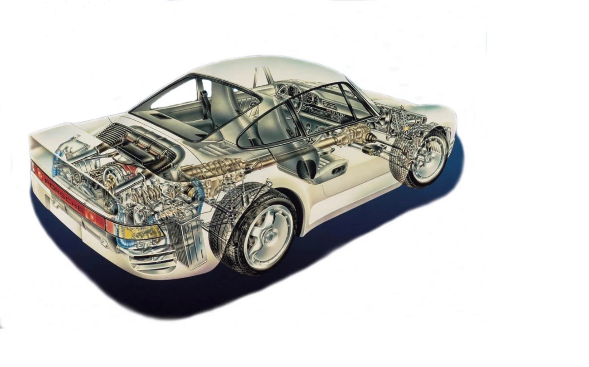 Για ένα εκπληκτικό αυτοκίνητο επιδόσεων όπως η 959, οι μηχανικοί της Porsche έπρεπε να βρουν έναν τρόπο ώστε η δύναμη να περνάει με αποτελεσματικό τρόπο στον δρόμο. Η τεράστια ισχύς των 450 ίππων από τον turbo flat-six κινητήρα των 2.85 λίτρων δεν ήταν… απλή υπόθεση για την εποχή, ενώ τα συστήματα τετρακίνησης δεν ήταν συνηθισμένη υπόθεση στα μοντέλα επιδόσεων. Η Porsche, ενσωμάτωσε ένα τέτοιο στην 959, το ταχύτερο αυτοκίνητο παραγωγής εκείνη την περίοδο. Μάλιστα, υπήρχε όργανο στο εσωτερικό που έδειχνε το ποσοστό ροπής που κατέληγε σε κάθε άξονα, αλλά και το ποσοστό κλειδώματος του πίσω μπλοκέ διαφορικού.