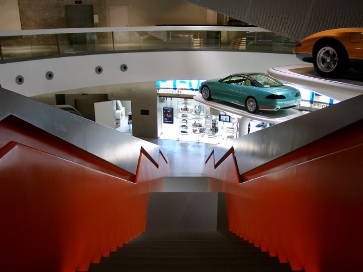 Τον διαγωνισμό για την σχεδίαση του κτιρίου κέρδισαν οι ολλανδοί Ben Van Berkel και Caroline Bos του UN studio και θα μπορούσαμε να σταματήσουμε εδώ, όμως δεν μπορούμε, γιατί δεν πρέπει. Και δεν πρέπει, γιατί δεν μπορείς να παρακάμψεις έτσι εύκολα ένα κτίριο που ...μιλά με τον Πυθαγόρα. Όλα εδώ στηρίζονται πάνω σε ένα φιλοσοφικό (στα όρια του μεταφυσικού) και όχι σε απόλυτα στατικές μελέτες. Ελάτε να βουτήξουμε στα δύσκολα. Η όλη ιδέα του κτιρίου βασίζεται πάνω στο «άπειρο» και στο σήμα του που είναι ένας κύκλος σε δύο επίπεδα το οποίο και ορίζεται ως πλάγιο οκτώ, προσφορά του John Wallis (1655). Μόνο που εδώ η διάταξη αυτή παίρνει όγκο σε τρεις διαστάσεις, αντί σε δύο και δημιουργεί μια διάταξη με τρεις επάλληλους κύκλους οι οποίοι ενώνονται μεταξύ τους σε μια μη διακοπτόμενη γραμμή! Μια γραμμή επικοινωνίας που μπορεί κανείς να ακολουθήσει χωρίς όμως να περάσει από όλα τα σημεία, αλλά να επιλέξει μη τεμνόμενες διαδρομές σε τρεις διαστάσεις! Καταλάβατε; Εντάξει είναι δύσκολο να το περιγράψει κανείς με λόγια, αλλά σαν επισκέπτης, για να το κάνω πιο πρακτικό, μπορείς να επιλέξεις ανάμεσα σε μια διαδρομή ιστορικής παράθεσης μοντέλων και σε επιμέρους θεματικές ενότητες, όπως βαριά οχήματα κ.λ.π. Πρακτικά ο επισκέπτης μπορεί να μπαίνει και να βγαίνει, από τις κύριες αίθουσες στις θεματικές, κατά βούληση, χωρίς να είναι υποχρεωμένος να περνά δύο φορές από το ίδιο σημείο.