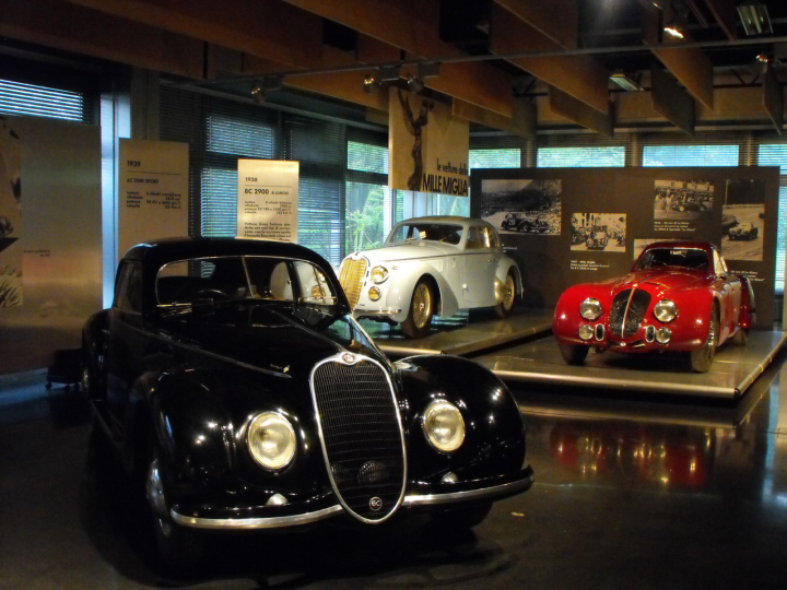 Στον πιο κάτω όροφο μπαίνουμε στην grande προπολεμική εποχή με τα τεράστια αεροδυναμικά αμαξώματα με τις 8C 2900 B Lungo και 8C 2900 B Le Mans του 19 του 198 να σου παίρνουν την αναπνοή. Εδώ η σύγκριση μπορεί να υπάρξει μόνο με τον Bugatti.