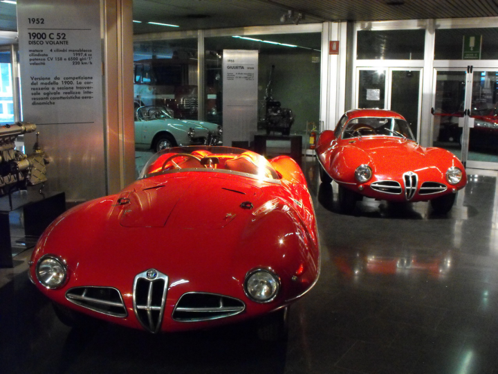 Πιο κάτω τα μεταπολεμικά 6C 2500 Freccia d’Oro του 1947 και 6C 2500 Villa d’Este του 1950, μπορεί να χρησιμοποιούν κινητήρες και πλαίσια που προέρχονται από τα απομεινάρια του πολέμου, αλλά η σχεδίαση έχει προχωρήσει και οι μεγάλες αλλαγές βρίσκονται πλέον στον αέρα. Στο αέρα που φυσά προς τη στην Disco Volante του 1952 και προς την 1900 S του 1954. Μόλις ένα χρόνο αργότερα προσγειώνονται τα αυτοκίνητα που θα άλλαζαν τον τρόπο που σκεφτόμαστε το ίδιο το αυτοκίνητο, οι Giulietta Spider, Giulietta Berlina και Giulietta Sprint. Κατεβαίνουμε ένα όροφο ακόμα για να συναντήσουμε την Giulia Ti του 1962 και το Duetto του 1966. Η GT Junior συνεχίζει να καίει καρδιές όπως τη πρώτη μέρα της παρουσίασής της το 1974 για να φτάσουμε στην Alfasud. Και στο υπόγειο, τα αγωνιστικά, οι Stradale, οι Zagato και οι Formula 1, μαζί με τις 155 του DTM.