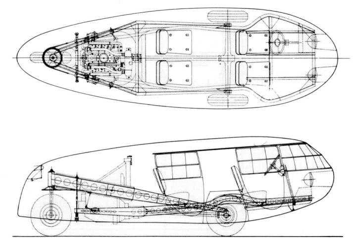 έμοιαζε με αερόπλοιο (αλλά που είχε τροχούς), με τη σχεδίαση σαν