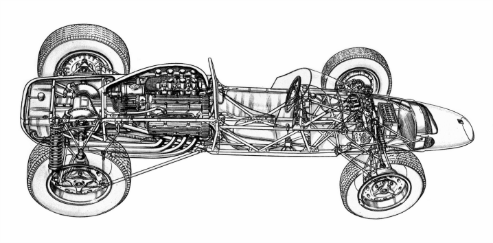 Τελικά ο V12 κινητήρας χώρεσε και μάλιστα για πρώτη φορά τοποθετήθηκε εγκάρσια πάνω από το κιβώτιο ταχυτήτων, το οποίο μάλιστα μοιράζονταν όχι μόνο το ίδιο κάτω καλούπι, αλλά και το ίδιο λάδι, όπως και στο Mini. Μια σχεδίαση που θα βρείτε άλλωστε και στην Dino 246.