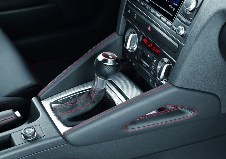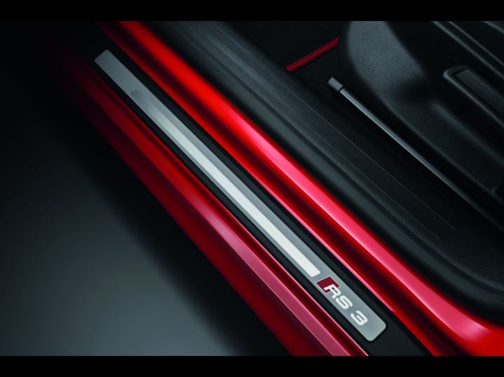 - Επενδύσεις καθισμάτων σε δέρμα Fine Nappa με ασημί ραφές και έμβλημα RS3 στις πλάτες των εμπρός καθισμάτων