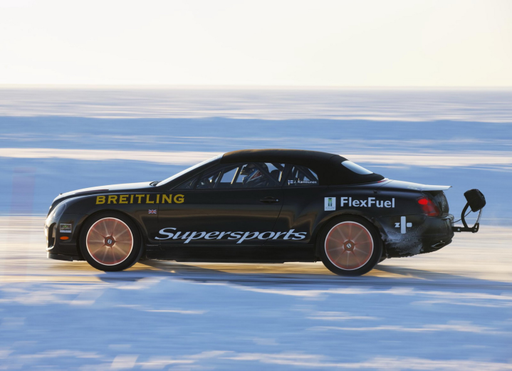 Ο τέσσερις φορές παγκόσμιος πρωταθλητής ράλλυ, Juha Kankkunen, πέτυχε στις 15 Φεβρουαρίου νέο ρεκόρ ταχύτητας στον πάγο, με όπλο του μια Bentley Continental Supersports Convertible. Ο Φινλανδός έφτασε τα 330,7 km/h στα παγωμένα νερά της Βαλτικής όπου το πάχος του πάγου φτάνει τα 70 cm, καταρρίπτοντας το ρεκόρ των 321,6 km/h που κατείχε ο ίδιος από το 2007 με μια Continental GT. Το εγχείρημα πιστοποίησε η… φινλανδική Τροχαία, ενώ τη διαδικασία επόπτευσε εκπρόσωπος του Guinness Book of Records. Η ελάχιστα τροποποιημένη Supersports Convertible διέθετε αγωνιστικό roll-cage, χειμερινά ελαστικά Sotto Zero 275/40R20 με καρφιά της Pirelli και αλεξίπτωτο επιβράδυνσης, ενώ εφοδιαζόταν με βιοαιθανόλη E85 αντί για βενζίνη, ως δείγμα περιβαλλοντικής δέσμευσης της Bentley στις ανανεώσιμες πηγές ενέργειας.