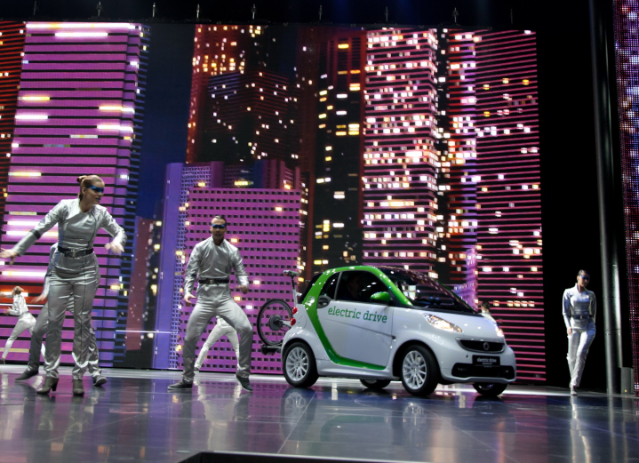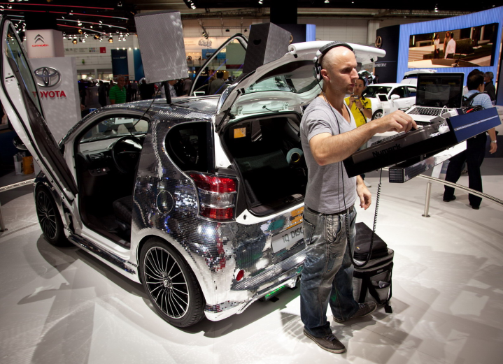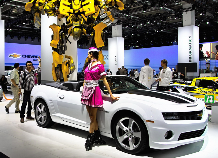 Δύο φίλοι επισκέπτονται το σαλόνι αυτοκινήτου της Φρανκφούρτης, βλέπουν από κοντά όλα τα νέα μοντέλα, φωτογραφίζουν ό,τι τους τραβά την περιέργεια (βλέπε φωτο δίπλα) και ακούνε ειδήσεις και κουτσομπολιά στα περίπτερα των εταιρειών και στους διαδρόμους της έκθεσης, τα οποία σχολιάζουν στον παρακάτω διάλογο.