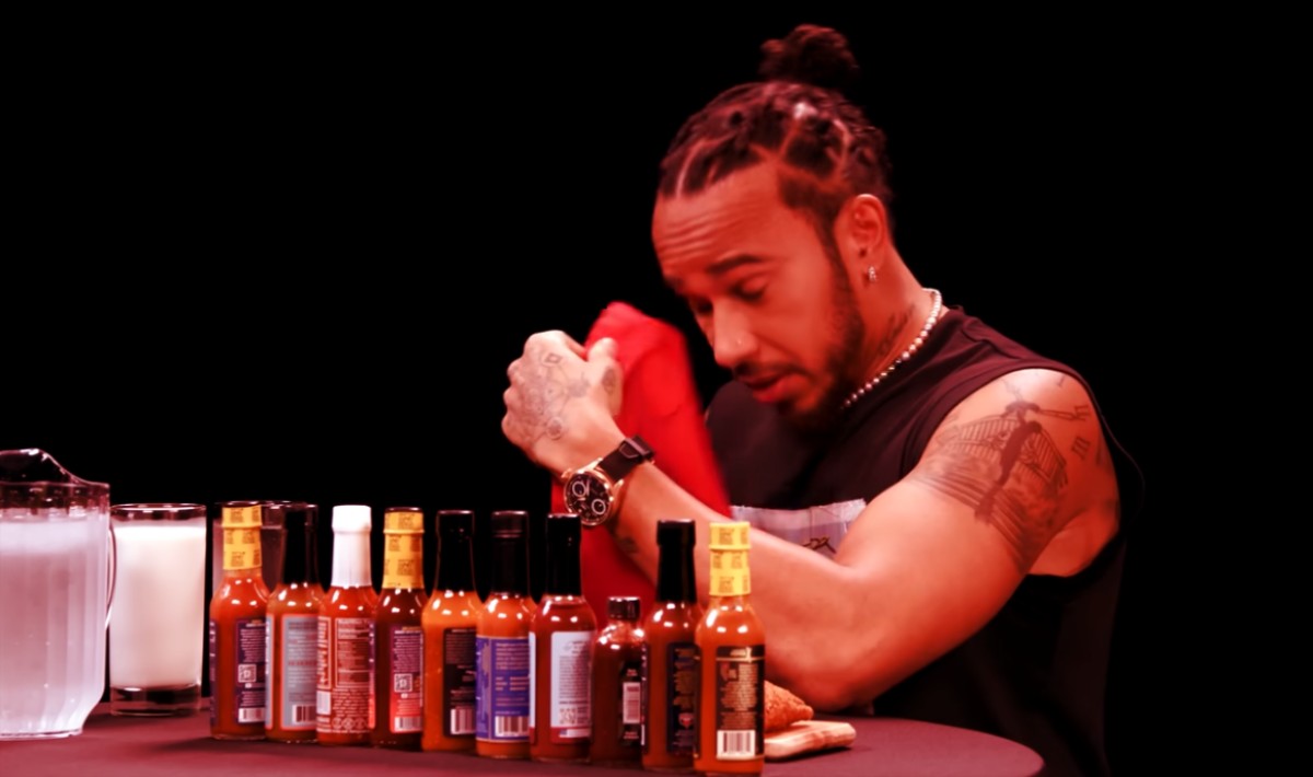 Η εκπομπή «First We East» είναι μια από τις δημοφιλέστερες στο YouTube, με τον παρουσιαστή να καλεί διασημότητες και να συνομιλούν υπό τη συνοδεία πικάντικων φτερούγων κοτόπουλου. Ο Sean Evans και η παραγωγή είχαν προσκαλέσει αρκετές φορές τον Lewis Hamilton, αλλά ο 7 φορές πρωταθλητής της F1 αρνούνταν συνεχώς. Ο λόγος ήταν η περίφημη πρόκληση «Hot Ones» με τις καυτερές σάλτσες.