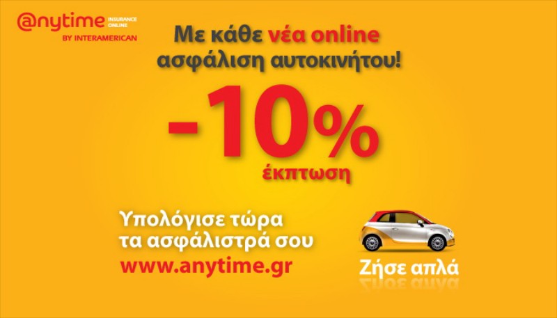 Anytime: Έκπτωση 10% στην ασφάλιση αυτοκινήτου