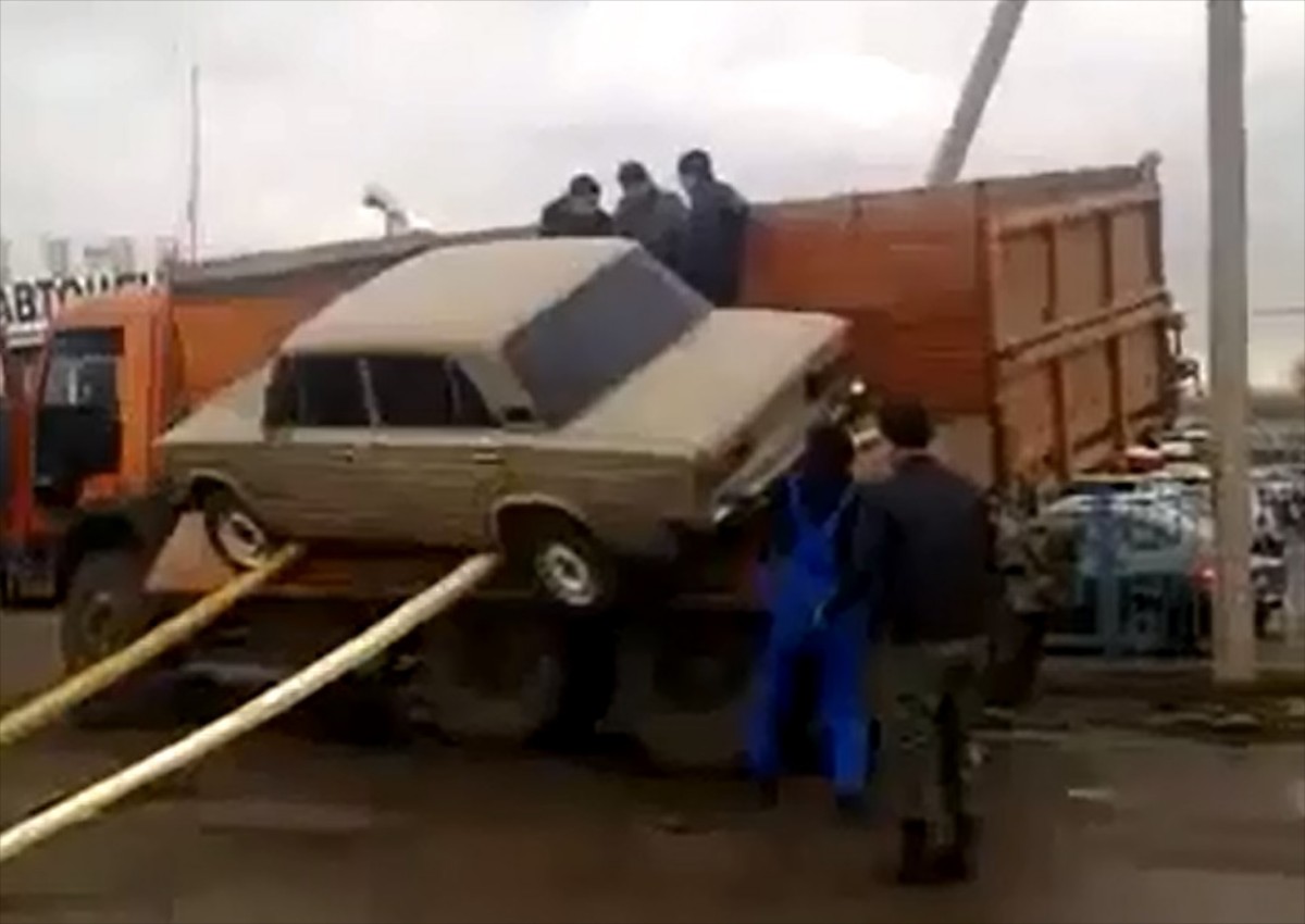 Δεν είναι ένας, oύτε δύο. Δεν είναι καν τρεις ή τέσσερις, αλλά πέντε. Πέντε ενήλικες άντρες. Ούτε ένας δεν σκέφτηκε να πει ότι ο συγκεκριμένος τρόπος δεν ενδείκνυται για φόρτωση αυτοκινήτου σε καρότσα φορτηγού; Εμείς το καημένο το Lada λυπόμαστε…