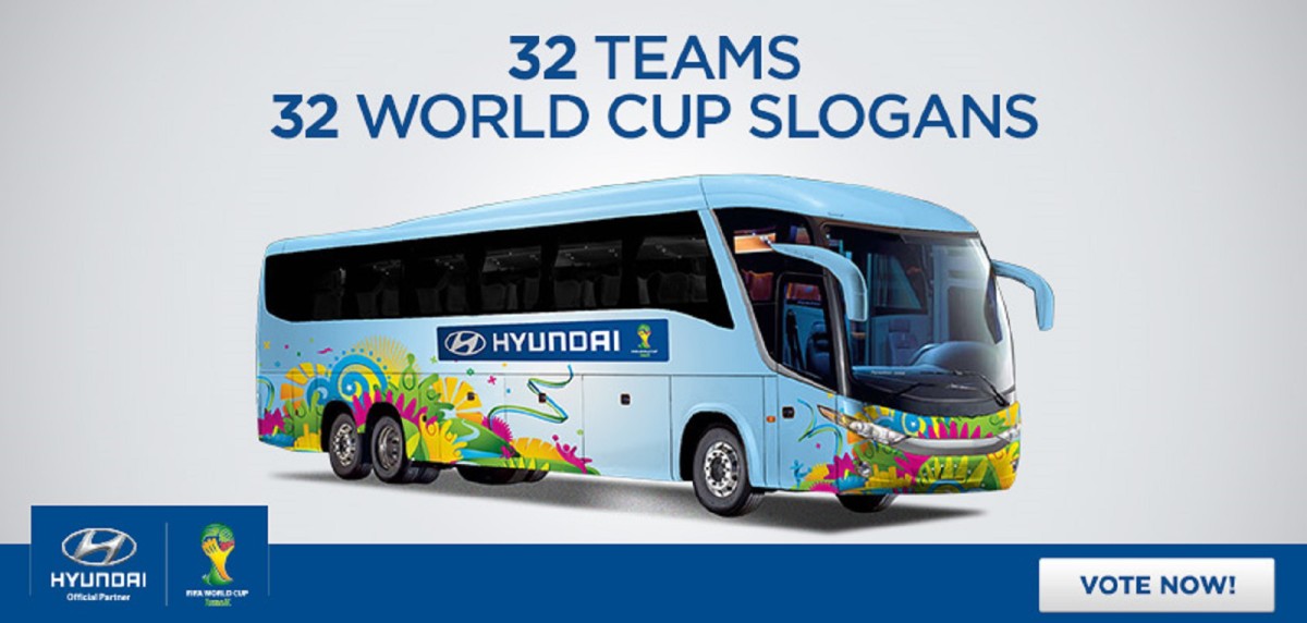 Για το επερχόμενο Παγκόσμιο Κύπελλο Ποδοσφαίρου, η Hyundai που είναι και βασικός χορηγός, υποστηρίζει άλλη μια εξαιρετική ενέργεια που έχει να κάνει με τα συνθήματα που θα κοσμούν τα πούλμαν των Εθνικών ομάδων στη Βραζιλία