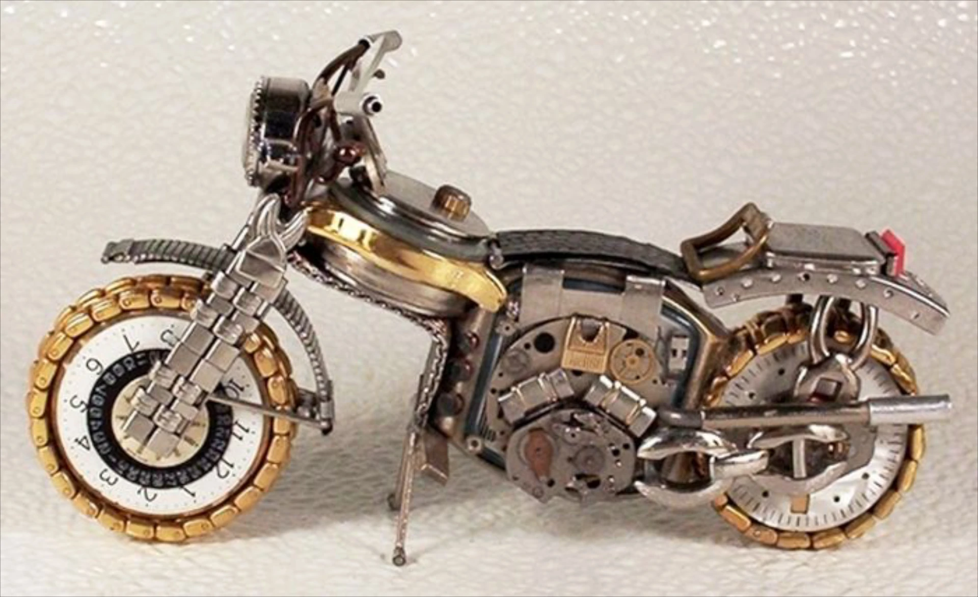 Ο Khristenko γεννήθηκε στην Ουκρανία και μετανάστευσε στις ΗΠΑ για δεκατέσσερα χρόνια όπου ξεκίνησε να δημιουργεί γλυπτά αξιοποιώντας άχρηστα ρολόγια χειρός. Μέχρι στιγμής έχει παρουσιάσει διάφορες συλλογές από καρφίτσες που παριστούν έντομα, σκαθάρια και σκορπιούς, όλα αξιοποιώντας εξαρτήματα χρονογράφων. Η νέα του σειρά αφορά μοτοσικλέτες και τετράτροχα για τα οποία αφιερώνει από 30 έως 50 ώρες προκειμένου να πάρουν τη μορφή που βλέπεται στις φωτογραφίες. Τα γλυπτά του Dmitry Khristenko τιμώνται από 300 έως 500 δολάρια αναλόγως της σπανιότητας των εξαρτημάτων και της δυσκολίας στη σύνθεση. Περισσότερα για τις δημιουργίες του Khristenko μπορείτε να δείτε μέσω του fineartamerica.com.