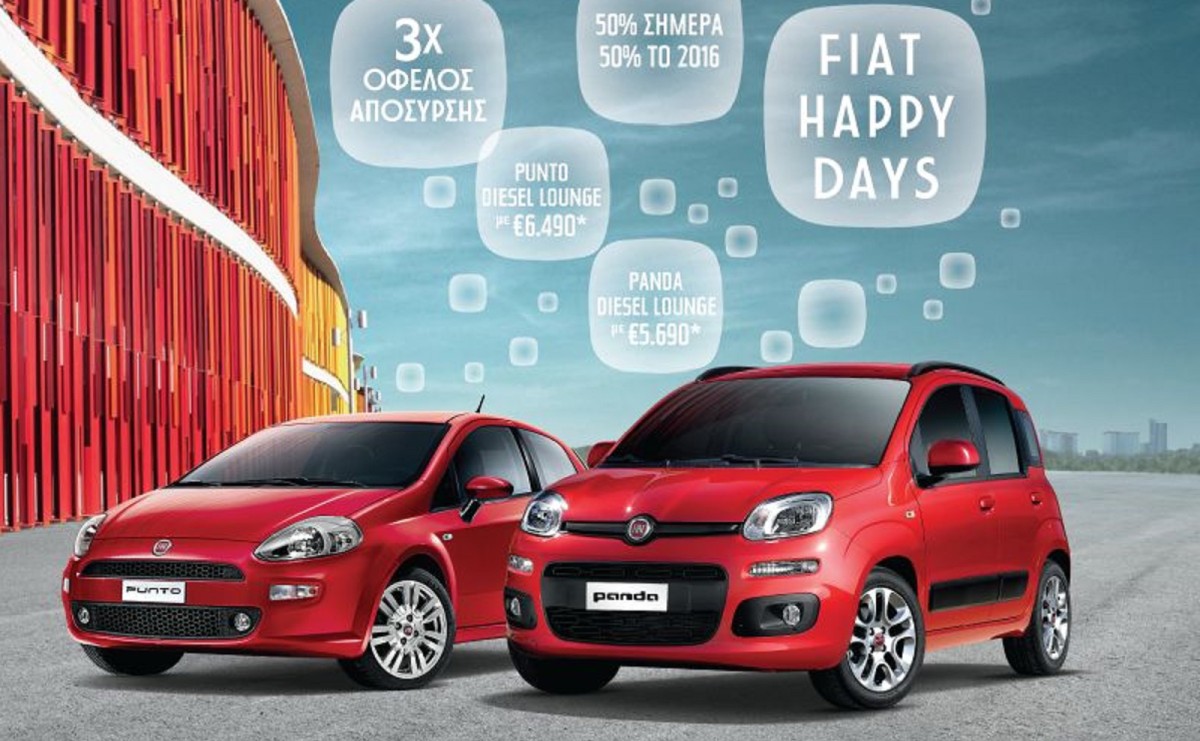 H Fiat προσφέρει τριπλό όφελος απόσυρσης για τις diesel εκδόσεις των Panda και Punto, με το πρόγραμμα Happy Days που θα διαρκέσει όλο τον Ιούνιο