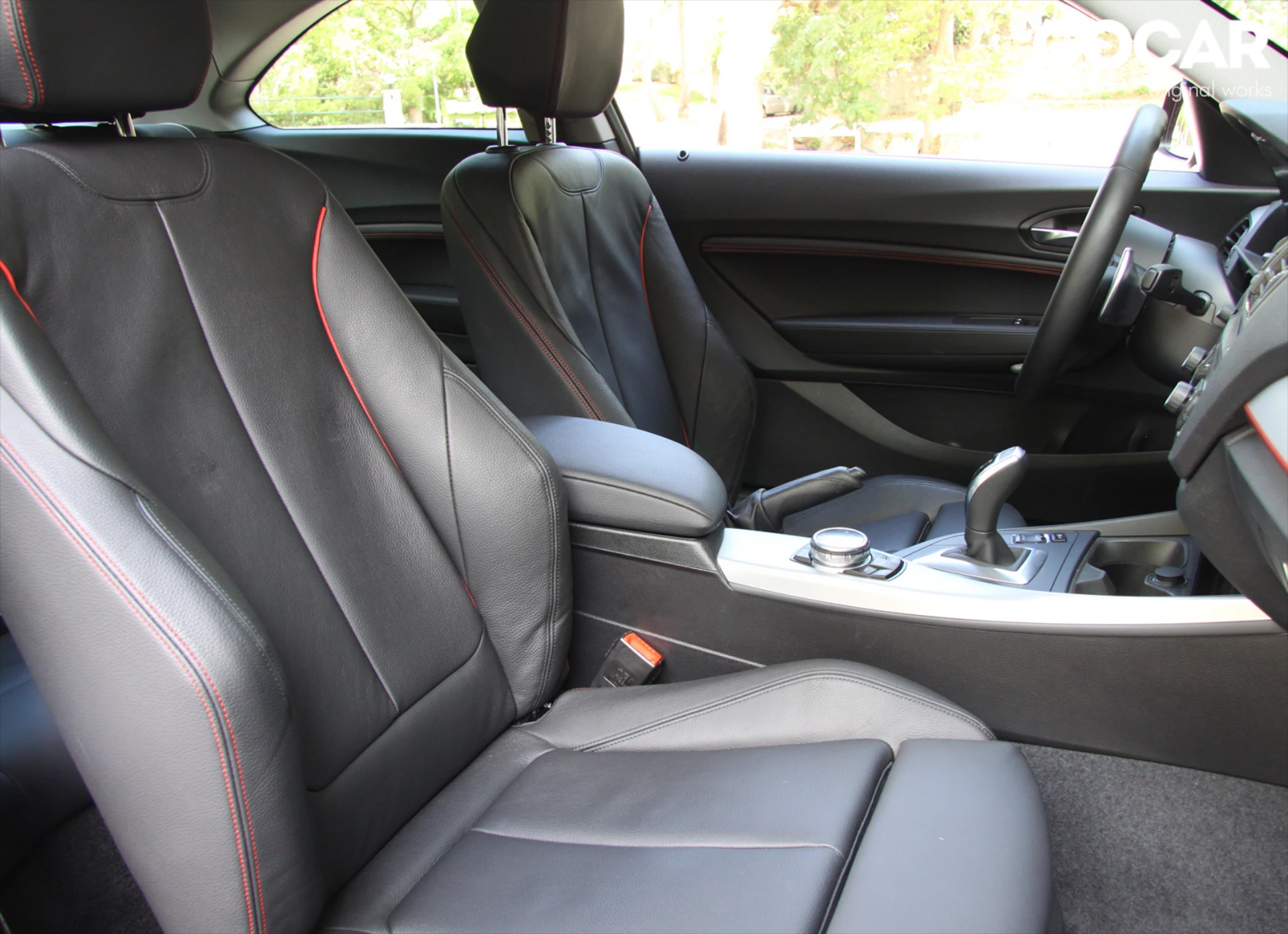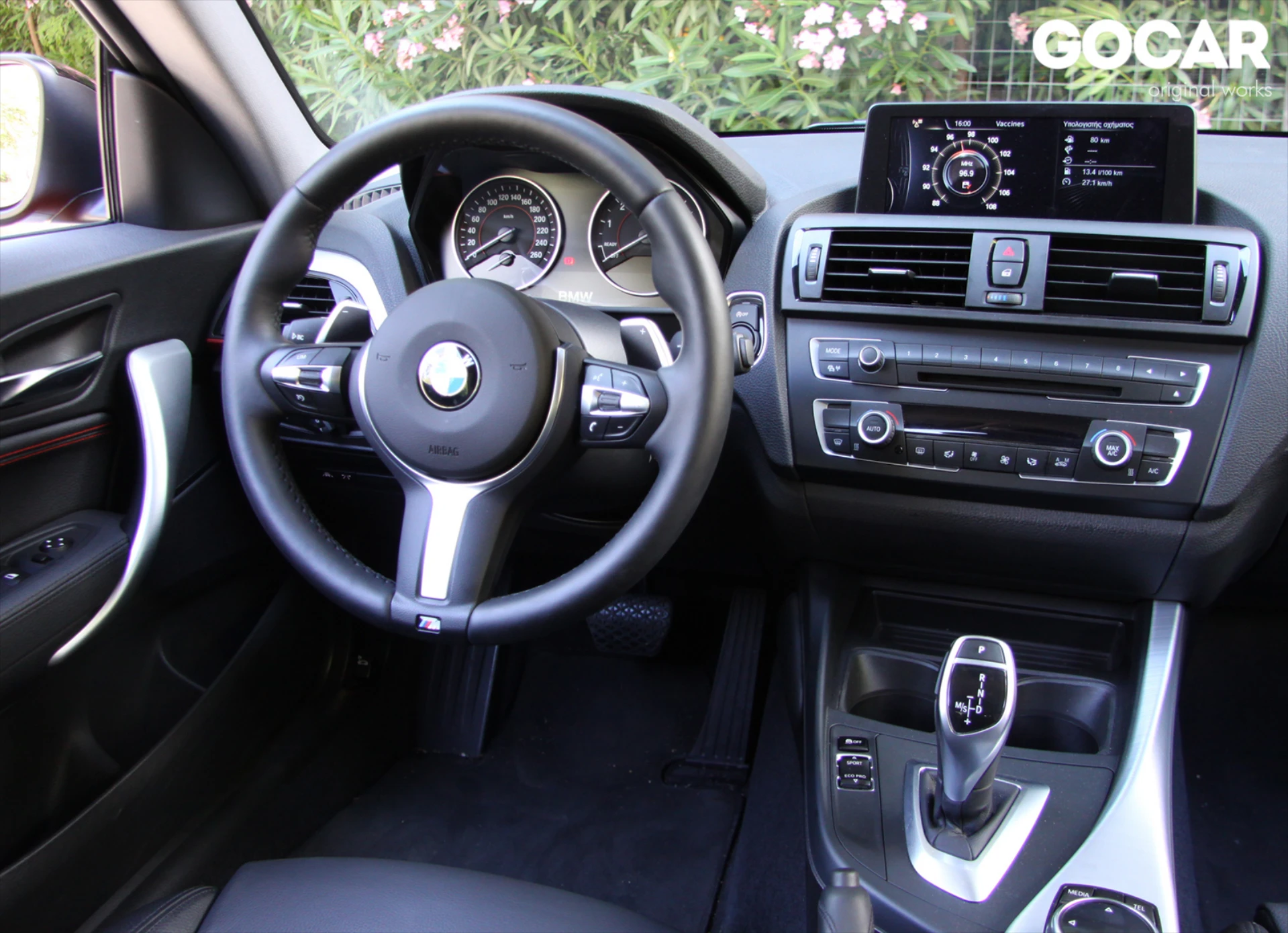 Στο εσωτερικό της σειράς 2, το ταμπλό είναι απευθείας παραπομπή στη μικρότερη σειρά. Δηλαδή, τι «απευθείας παραπομπή»; Ίδιο είναι. Αυτούσιο μεταφέρθηκε. Προσφέρει πλήρη πληροφόρηση και εξαιρετικά στιβαρή αίσθηση, με την οικεία εικόνα των μαλακών πλαστικών και της σωστής εργονομίας. Από εκεί και πέρα, η θέση οδήγησης ρυθμίζεται και πάει όσο χαμηλά τραβάει η όρεξη αλλά και το ύψος του οδηγού. Ο επιλογέας πέφτει με ακρίβεια κάτω από το χέρι του οδηγού- άσχετα με το γεγονός πως στην προκειμένη περίπτωση το κιβώτιο είναι αυτόματο και δε χρειάζεται ιδιαίτερες επαφές ο επιλογέας. Γενικά η εικόνα είναι πολύ ευχάριστη, ενώ η χωροταξία είναι τυπική για coupe BMW. Στο πίσω κάθισμα η πρόσβαση είναι σχετικά εύκολη και ο χώρος επαρκεί για τη φιλοξενία δύο ενηλίκων- αρκεί να μην έχουν ιδιαίτερα μεγάλο ανάστημα. Για τις αποσκευές των επιβατών, ο σχετικός χώρος έχει όγκο 390 λίτρων και εύκολη πρόσβαση με αναμενόμενα μικρό άνοιγμα.