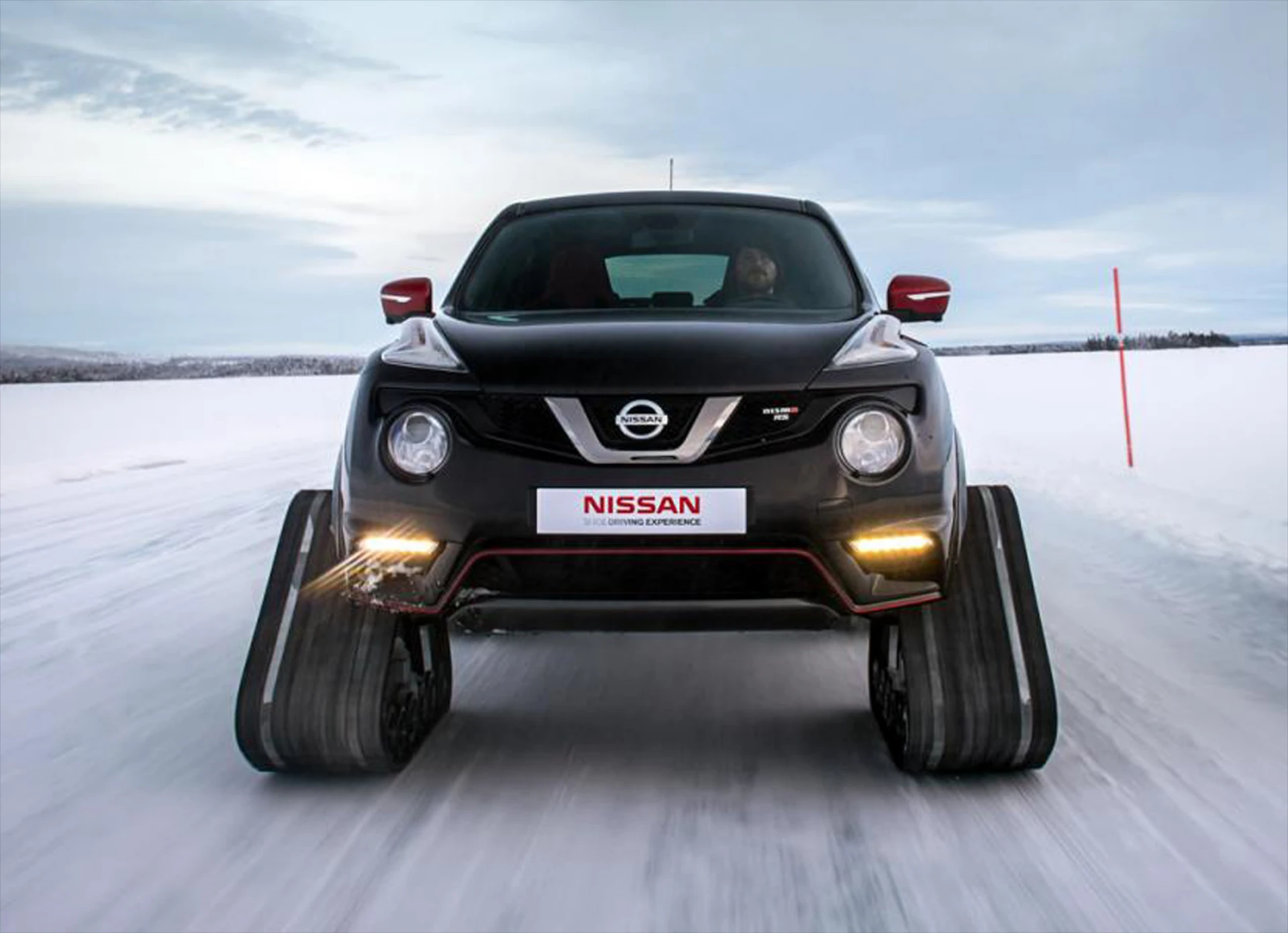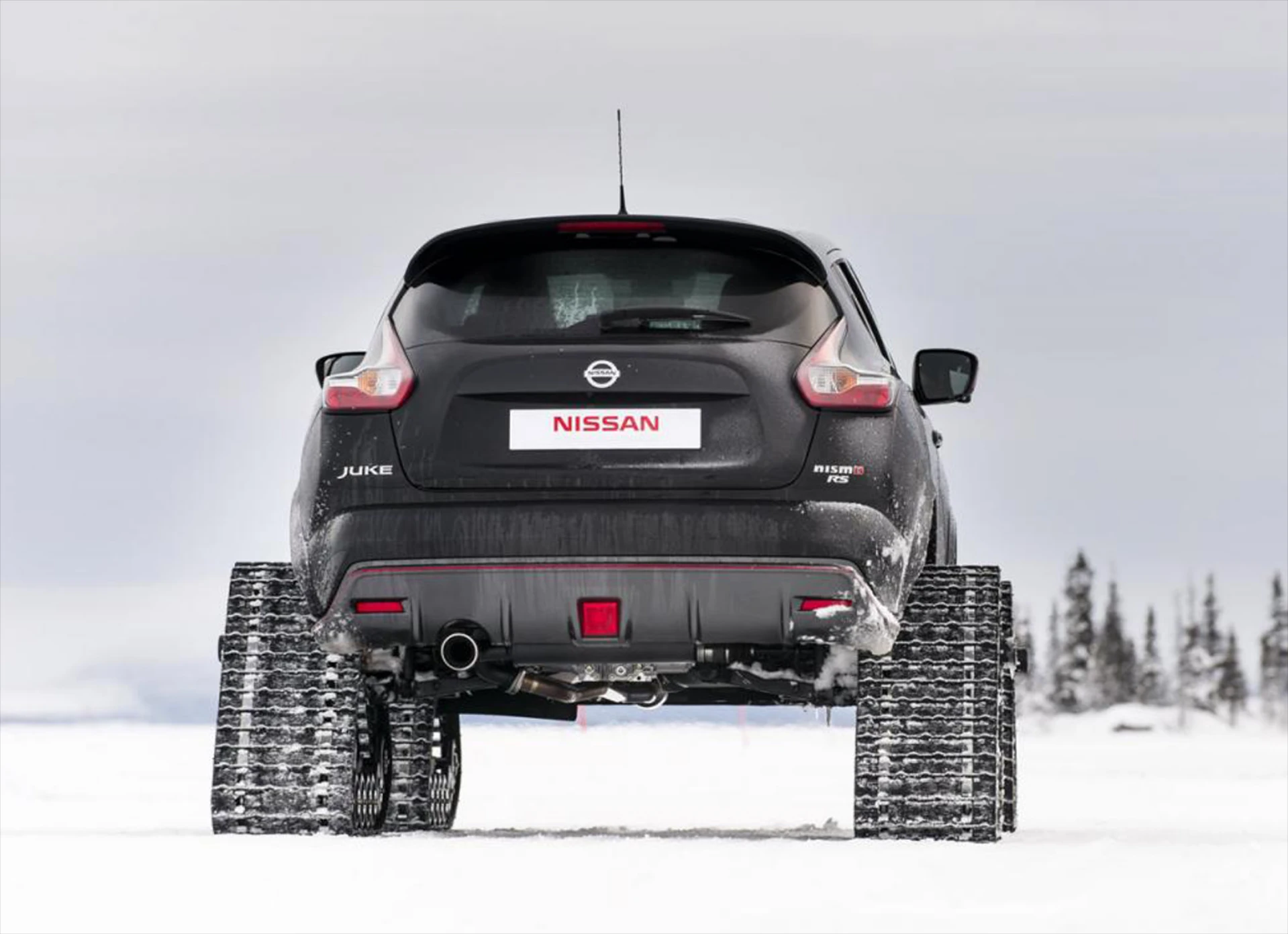 Μια άγρια έκδοση του Nissan Juke RS παρουσιάστηκε πρόσφατα, δίνοντας τέλος στο φόβο αποκλεισμού από τα χιόνια, μιας και το μικρό crossover αντί για τροχούς πατάει επάνω σε… ερπύστριες. Αυτή είναι η μόνη διαφορά με ένα Juke RS με σύστημα τετρακίνησης και Xtronic CVT κιβώτιο. Το μοναδικό Juke κατασκευάστηκε με σκοπό την υποστήριξη στο event ice drifting, που διοργανώθηκε στη Φιλανδία.