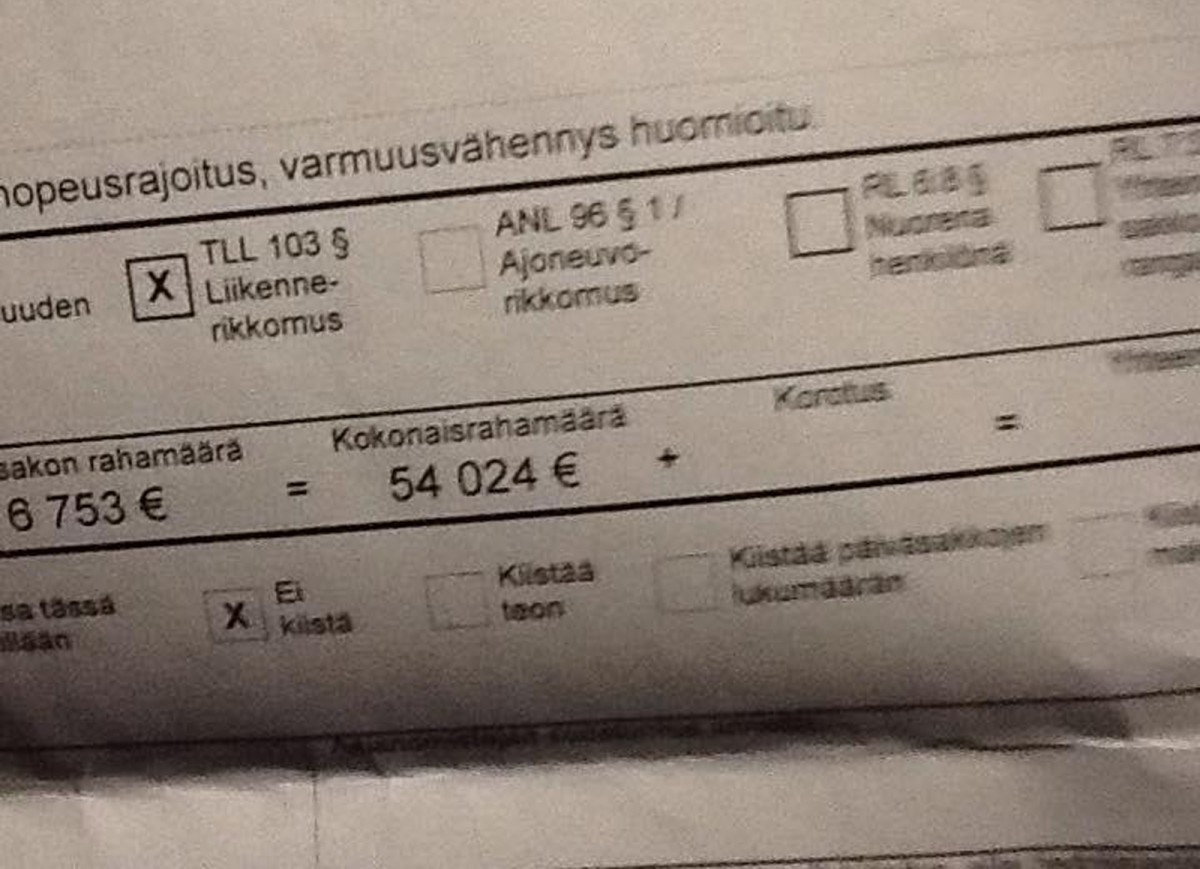 Υπάρχει λογική εξήγηση, μιας και στη Φιλανδία λειτουργούν διαφορετικά από το δικό μας σύστημα. Τα πρόστιμα που υποβάλει η αστυνομία εξαρτώνται από το εισόδημα του πολίτη. Έτσι, ο συγκεκριμένος κύριος με δηλωμένο εισόδημα 6,5 εκατομμύρια ευρώ ετησίως, το πρόστιμο των 54.024 ευρώ δεν είναι και σημαντικό ποσό για αυτόν…