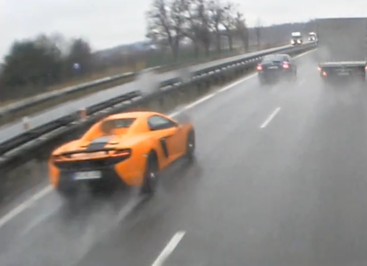 Μία McLaren 650S έχασε τον έλεγχο και τράκαρε καθώς ταξίδευε στην εθνική οδό με βροχόπτωση. Δεν θέλει και πολύ να γίνει το κακό, ωστόσο να σημειωθεί ότι κανένας δεν τραυματίστηκε, εκτός από το αυτοκίνητο.