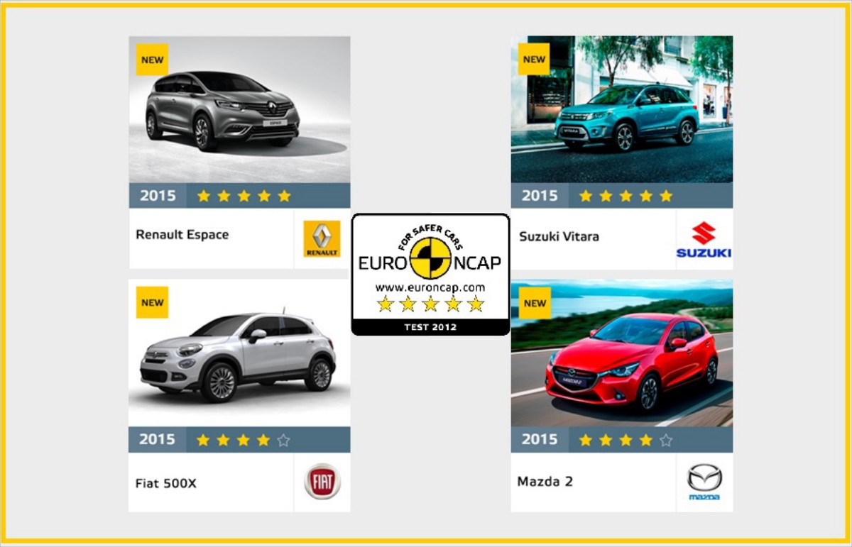 Οι βαθμολογίες των Suzuki Vitara, Fiat 500X, Mazda 2 και Renault Espace στις δοκιμές ασφάλειας του Euro NCAP