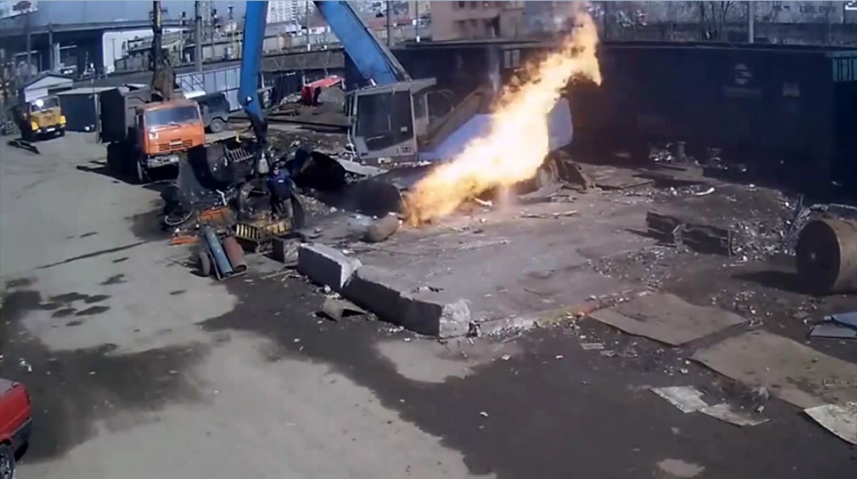 Θα μπορούσε να συμβεί οπουδήποτε αναλαμβάνουν εργασίες τεχνίτες χωρίς συνείδηση του κινδύνου. Ωστόσο στη Ρωσία οι καταγραφές σε κάμερες έχουν αναδείξει όλες τις παθογένειες της ανθρώπινης φύσης. Ο οξυγονοκολλητής στο video προσπαθεί να κόψει ένα δοχείο για το οποίο μάλλον αγνοούσε ότι περιείχε προπάνιο. Ευτυχώς η ανάφλεξη δε συνοδεύτηκε με έκρηξη που θα είχε τραγικές επιπτώσεις, όμως η "τσάπα" δεν γλίτωσε από τις φλόγες.