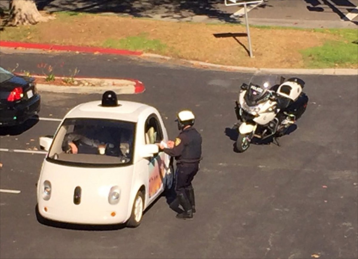 Ο αστυνομικός δήλωσε ότι σταμάτησε το αυτοκίνητο για να ρωτήσει τον χειριστή του, αν υπήρχε κάποιος λόγος που πήγαινε τόσο αργά το αυτόνομο αυτοκίνητο. Δεν καταγράφηκε κάποια παράβαση, με την Google να δηλώνει με υπερηφάνεια ότι δεν έχει πάρει κανένα «μπιλιετάκι» από την αστυνομία στο διάστημα που κάνει δοκιμές.