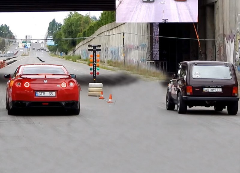 Κόντρα Nissan GT-R vs Lada Niva (video)