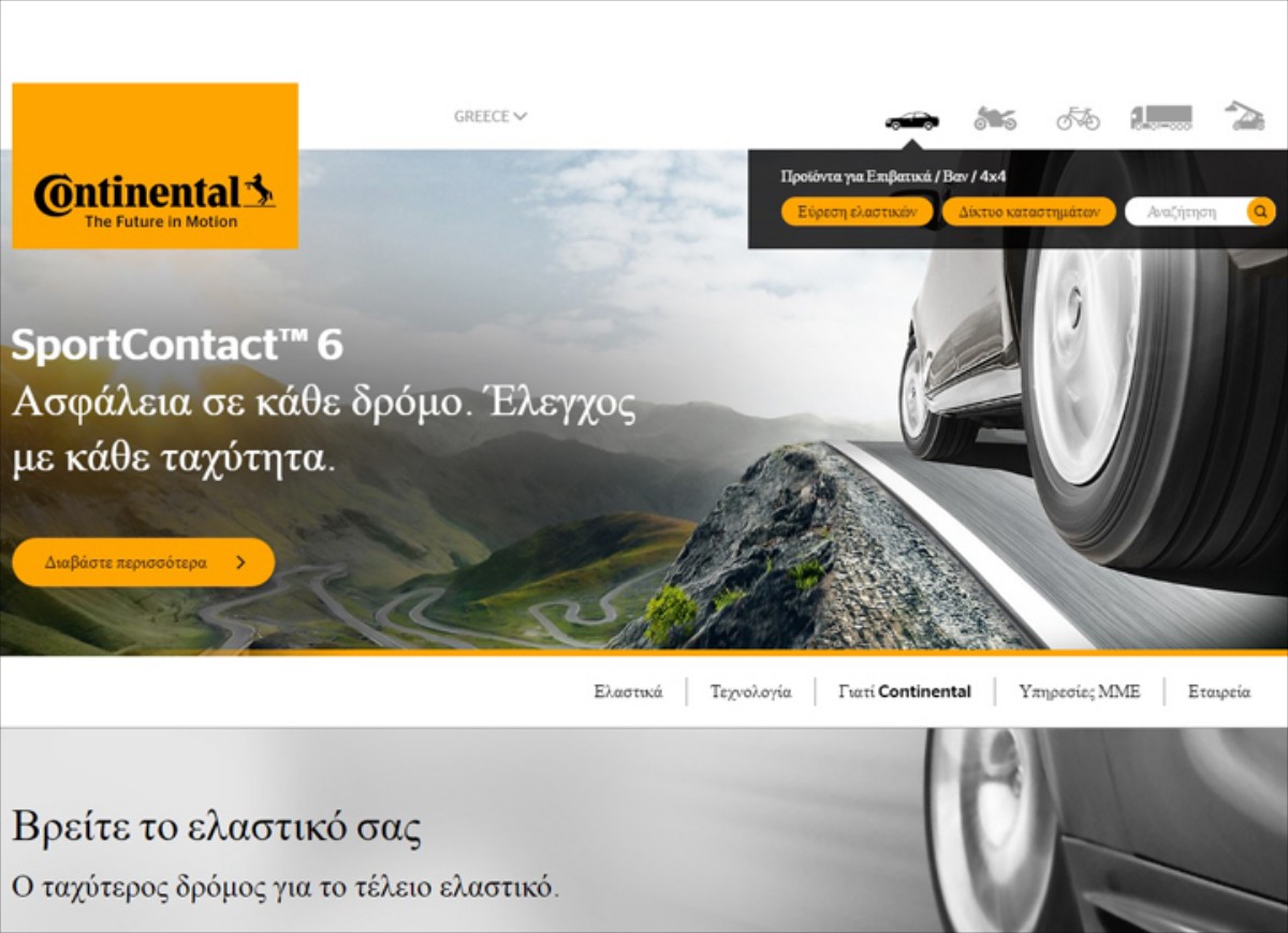 Η νέα ελληνική εκδοχή της ιστοσελίδας ελαστικών της Continental είναι διαθέσιμη στο διαδίκτυο