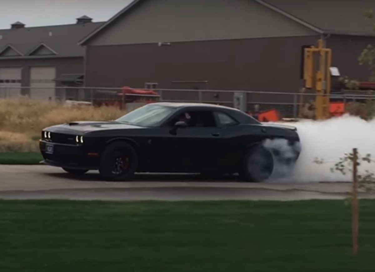 Πιτσιρίκι που χρησιμοποιεί ένα Challenger για να κάνει burnout