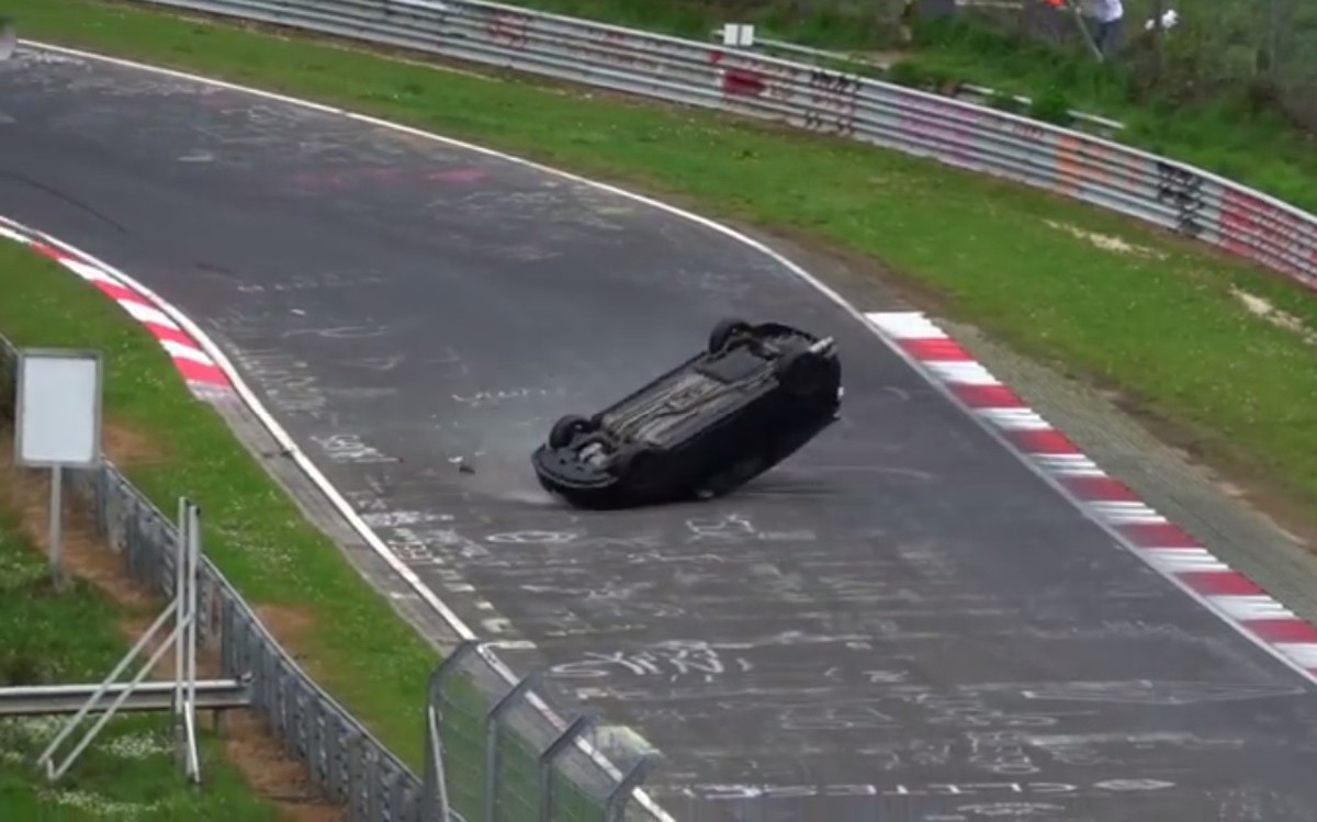 Σε μια γρήγορη προσέγγιση του ατυχήματος θα λέγαμε ότι το συγκεκριμένο ατύχημα οφείλετε σε λάθος του οδηγού. Όπως φαίνεται αφήνει γκάζι πάνω στη στροφή και το πίσω μέρος του αυτοκινήτου ανοίγει την πορεία του. Χειρότερα κάνει τα πράγματα το γεγονός ότι ο εμπρός εσωτερικός τροχός καβαλάει το κέρμπ, με το αποτέλεσμα να είναι μια μεγαλοπρεπής τούμπα.