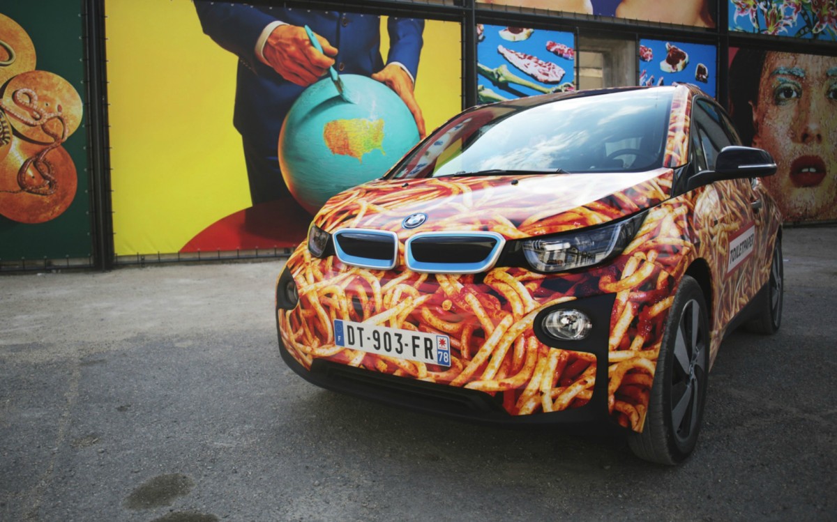 Έχουμε δει αρκετά ιδιαίτερα αυτοκίνητα κατά καιρούς, ωστόσο το συγκεκριμένο BMW i3 είναι πραγματικά πολύ… ξεχωριστό. Το ηλεκτρικό μοντέλο βγήκε στο σφυρί στην 4η ετήσια εκδήλωση που διοργανώθηκε στο ίδρυμα του Leonardo DiCaprio και πουλήθηκε έναντι 117.000 δολαρίων. Η αντιπροσωπευτική του ονομασία είναι «BMW Spaghetti Car» και αυτό γιατί οι δημιουργοί του, Maurizio Cattelan και Pierpaolo Ferrar είχαν τη φαεινή ιδέα να κολλήσουν μεμβράνες σε όλο το αμάξωμα του γερμανικού μοντέλου, που δείχνουν κοντινές φωτογραφίες από μακαρόνια, Napolitana για την ακρίβεια