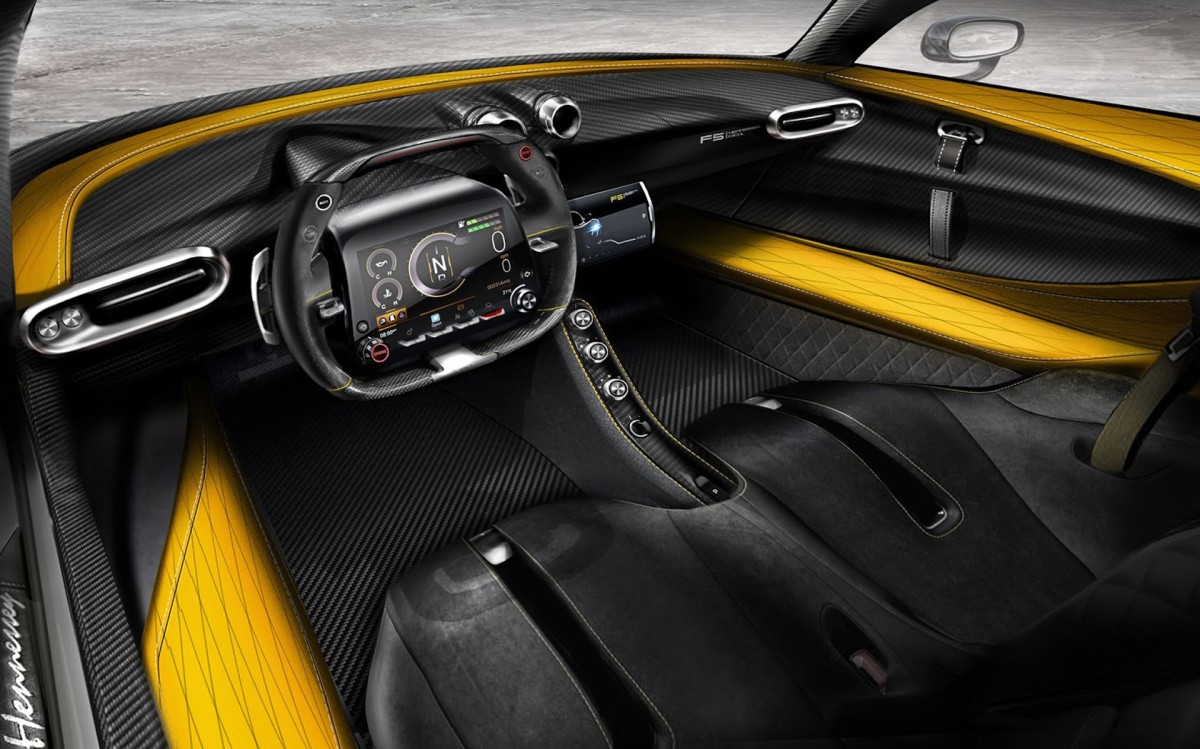 Μετά την παρουσίαση του Hennessey Venom F5 στην έκθεση SEMA στο Las Vegas, η τεξανή εταιρεία δημοσίευσε τις πρώτες φωτογραφίες από το εσωτερικό του. Όπως βλέπουμε, κυριαρχεί το ανθρακόνημα και οι πολλές κίτρινες πινελιές. Εμφανώς πιο ανανεωμένο σε σχέση με το Venom GT, ενώ επικρατεί η «κλειστοφοβική» αίσθηση ενός hypercar. Τα δύο αγωνιστικά μπάκετ είναι πακτωμένα στο πάτωμα, ωστόσο έχουν κερδίσει αρκετό χώρο χάρη στη στενή κονσόλα, που χωρίζει τα δύο καθίσματα.