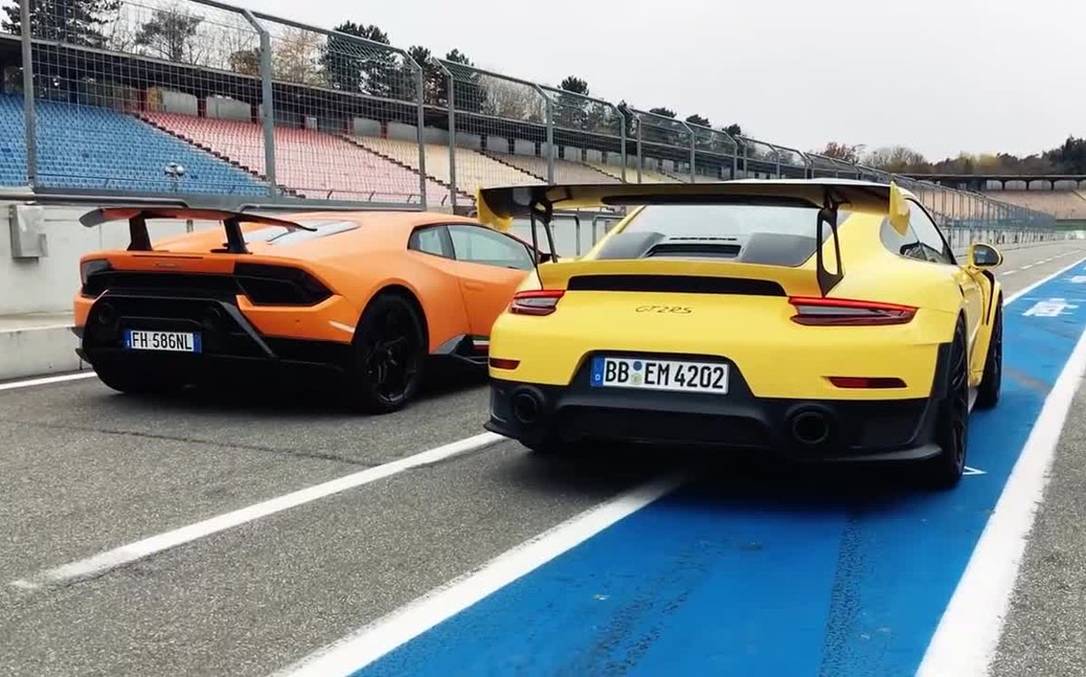 Porsche 911 GT2 RS vs Lamborghini Huracan Performante (vid)