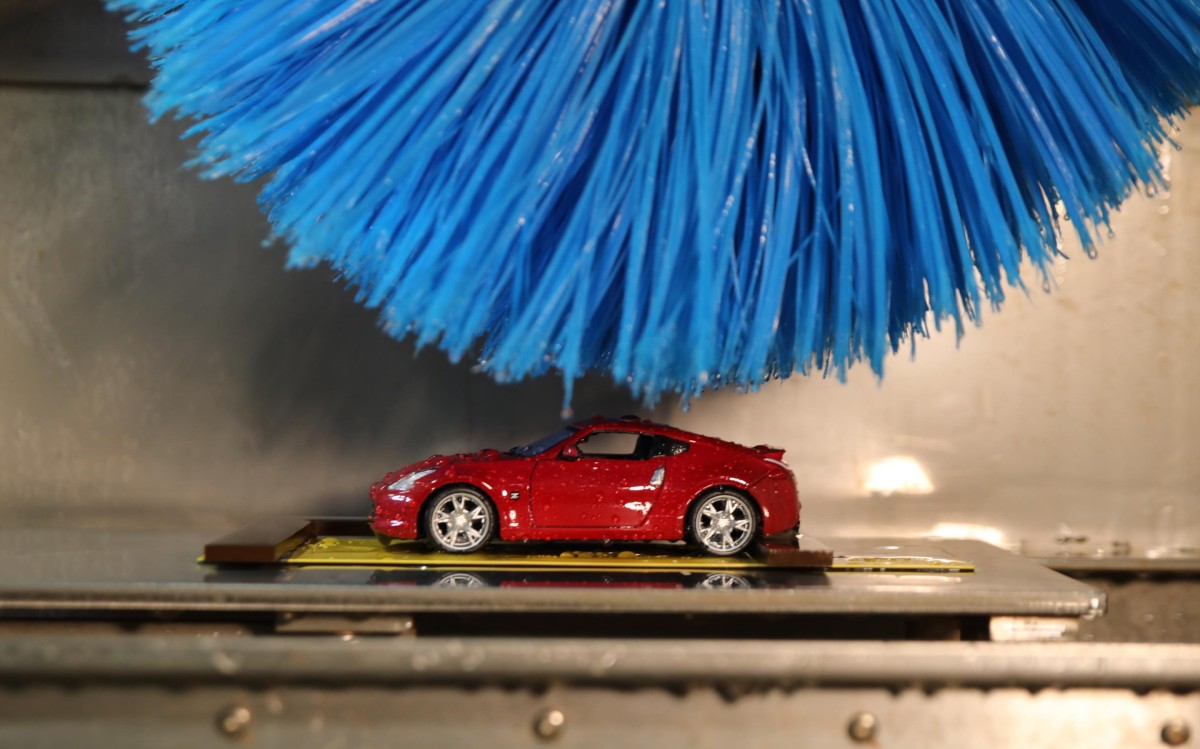 Έναν έξυπνο τρόπο για να δοκιμάζουν την αντοχή της βαφής των αυτοκινήτων έχουν σκεφτεί στο τεχνικό κέντρο της Nissan Β. Αμερικής, στο Farmington Hills του Μίσιγκαν. Δημιούργησαν ένα μίνι πλυντήριο, για να δοκιμάζουν το πόσο αντέχει η βαφή σε σκληρές δοκιμασίες – όπως η βούρτσα ενός πλυντηρίου αυτοκινήτων – πριν τη χρησιμοποιήσουν στα κανονικά τους μοντέλα.