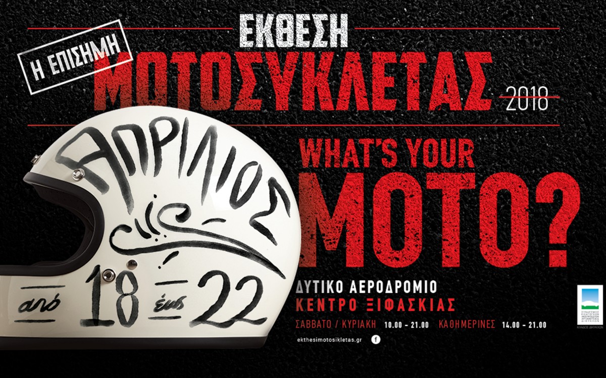 Η επίσημη έκθεση αντιπροσώπων μοτοσικλέτας θα ανοίξει για το κοινό της στο Κέντρο Ξιφασκίας στο Ελληνικό από την Τετάρτη 18 Απριλίου ως και την Κυριακή 22 Απριλίου και στοχεύει να είναι για δεύτερη συνεχόμενη χρονιά το μεγαλύτερο γεγονός μοτοσυκλέτας στην Ελλάδα.