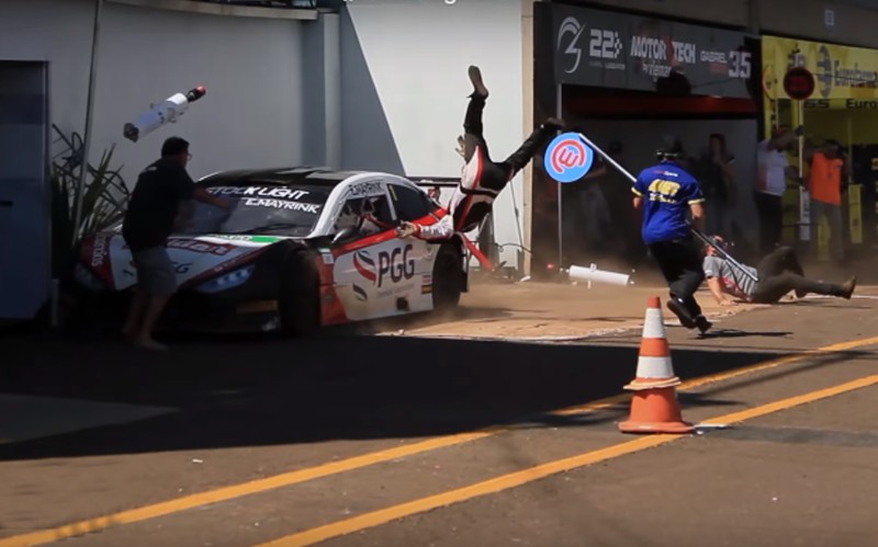 Τρεις άνθρωποι τραυματίστηκαν σοβαρά όταν ένα αγωνιστικό αυτοκίνητο τους χτύπησε μέσα στο pit lane. Το τρομακτικό συμβάν έγινε σε αγώνα στη Βραζιλία, όταν ένα αγωνιστικό βγήκε εκτός πορείας μετά την επαφή του με άλλο αυτοκίνητο.