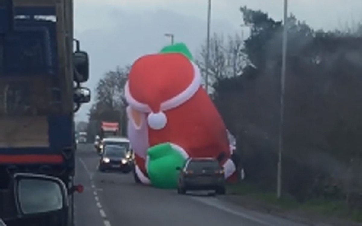 όπου ένας φουσκωτός Άγιος Βασίλης «έκλεισε» τον δρόμο για αρκετές