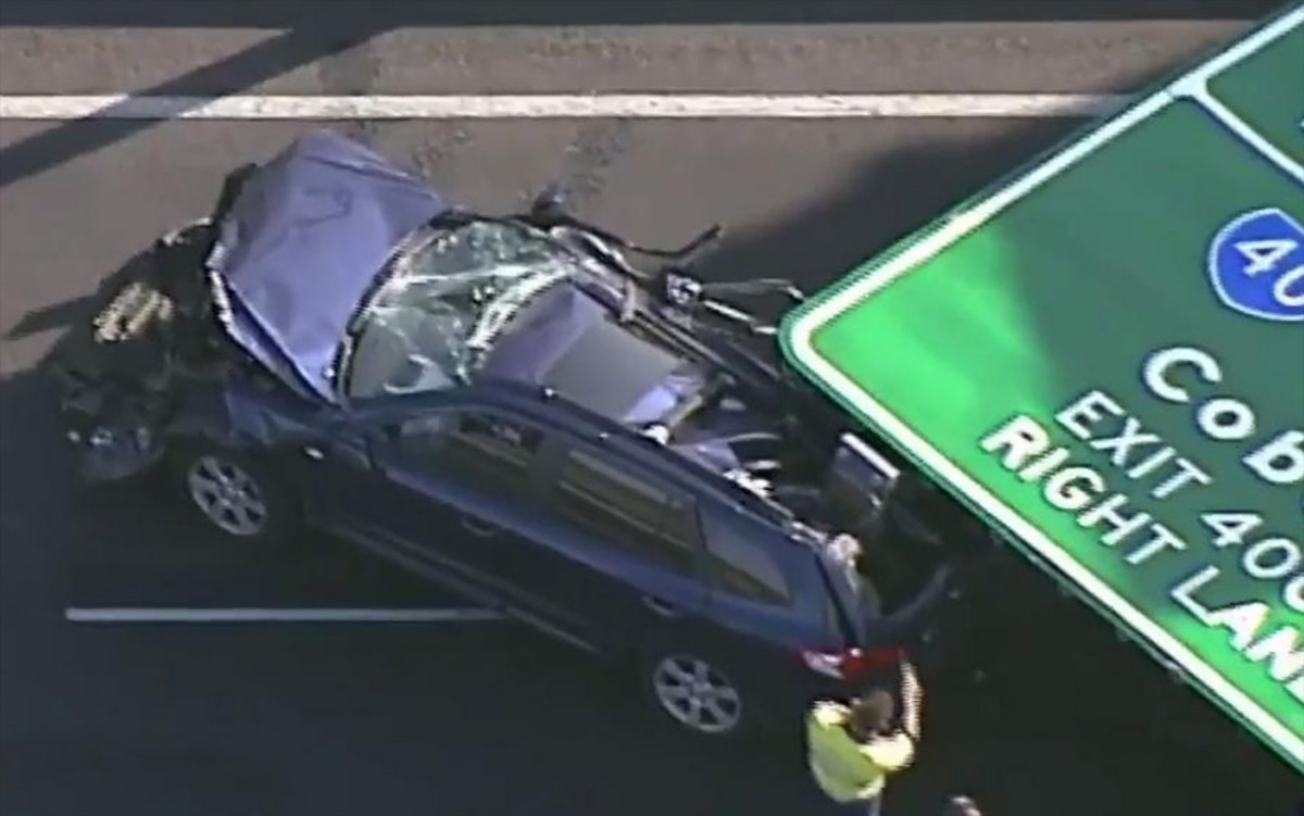 Την τύχη με το μέρος του είχε ένας οδηγός σε αυτοκινητόδρομο της Μελβούρνης, στην Αυστραλία, όταν μια γιγάντια πινακίδα καταπλάκωσε το αυτοκίνητό του.