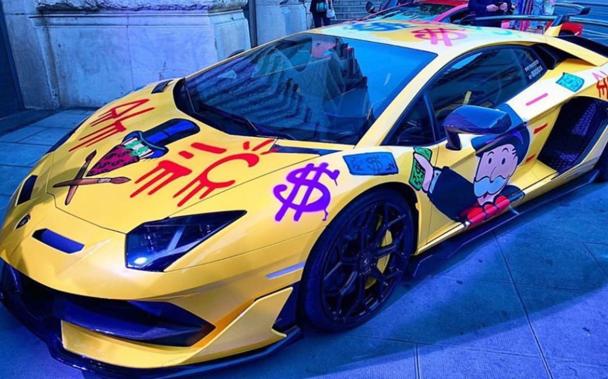 ζωγραφίζει επάνω στο ιταλικό υπεραυτοκίνητο με τόση άνεση,