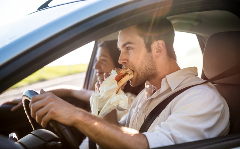 Οι κοιλιακοί πόνοι, το έντονο αίσθημα κόπωσης και η καούρα οφείλονται εν πολλοίς στην κατανάλωση μεγάλης ποσότητας φαγητού, ειδικά όταν έχετε φάει… λαίμαργα. Πρόκειται για απευκταία συμπτώματα που παρεμποδίζουν τις… επιδόσεις σας στο δρόμο, ειδικά αν αναλογιστεί κανείς πως ακόμα και ένα «κανονικό» γεύμα μειώνει τις επιδόσεις κατά 10%. Πριν επιβιβαστείτε στο τιμόνι, λοιπόν, προτιμήστε ένα μικρό γεύμα και αν ξαναπεινάσετε, τότε κάντε μία στάση και επιλέξτε ένα σνακ.
