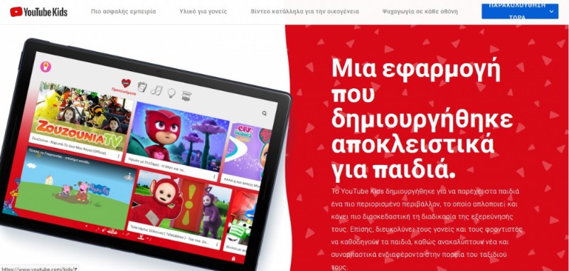 βίντεο και κανάλια που θα είναι διαθέσιμα στα παιδιά μέσω της