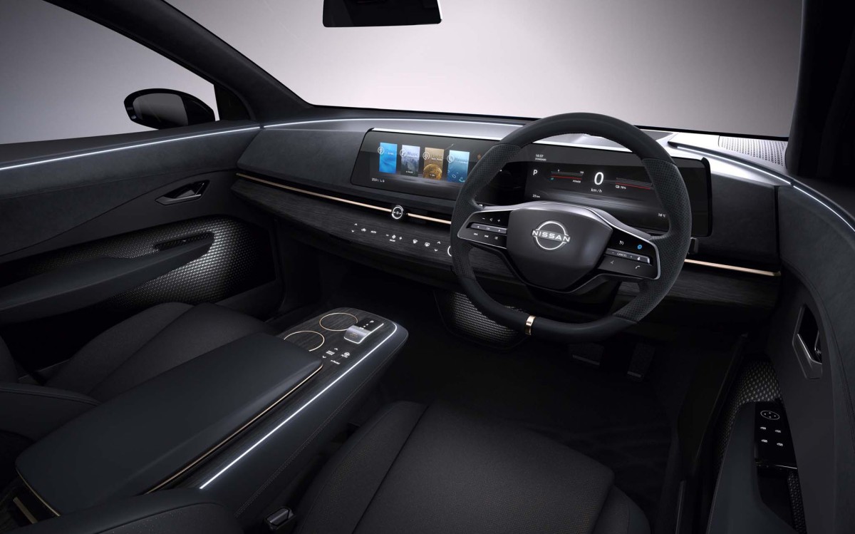 Η διάταξη αντικατοπτρίζει τη νέα σχεδιαστική γλώσσα του “Διαχρονικού Ιαπωνικού Φουτουρισμού” της Nissan, που εκφράζεται επίσης και από την μοναδική εμπρόσθια μάσκα - "ασπίδα" του Ariya Concept.