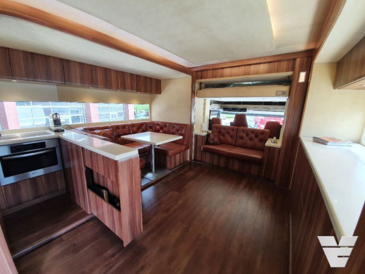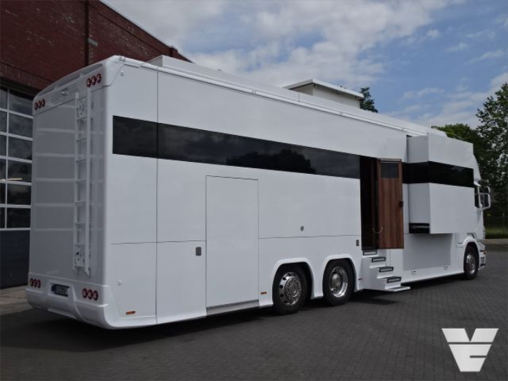 Μόνο 380.000 ευρώ και άδεια οδήγησης φορτηγού φτάνουν για να κάνετε τις πιο ιδιαίτερες διακοπές. Ο λόγος γίνεται για το εικονιζόμενο αυτοκινούμενο τροχόσπιτο. Με βάση ένα Scania R480 και πολλές τροποποιήσεις, τα αποτέλεσμα είναι ένα υπερπολυτελές πτυσσόμενο τροχόσπιτο με δερμάτινες και ξύλινες επενδύσεις, 3 δωμάτια, μπάνιο με ντους, κουζίνα, ψυγείο, φούρνο, ντουλάπες, δεξαμενή πόσιμου νερού, 3 οθόνες, θέρμανση, κλιματισμό, γεννήτρια και λίστα δεν έχει τέλος.