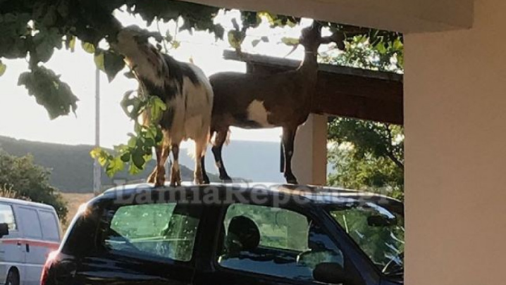 Το έχουμε δει αρκετές φορές σε φωτογραφίες που δημοσιεύονται στα social media. Μια άτυχη γυναίκα στη Λαμία όμως το είδε να συμβαίνει μπροστά της, στο αυτοκίνητό της! Δυο κατσίκες κάτω από μία μουριά, αλλά πάνω στην οροφή του ΙΧ της!! Τα δύο ζώα θέλοντας να φτάσουν τα φύλλα του δέντρου για να τραφούν, κατάφεραν να βρουν τρόπο σκαρφαλώνοντας στην οροφή ενός αυτοκινήτου!