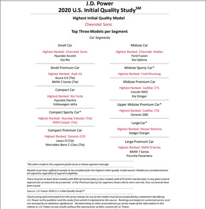 Στα τέλη Ιούνη δημοσιευτήκαν στοιχεία από την έρευνα του οργανισμού J.D. Power που διεξήχθη στην Αμερική, παρουσιάζοντας τα προβλήματα τα οποία έχουν οι ιδιοκτήτες με τα αυτοκίνητα τους. Πιο συγκεκριμένα, στην παρούσα έρευνα καταγράφονται τα μέρη ενός αυτοκινήτου που παρουσιάζουν βλάβη ή δυσλειτουργία, καθώς και το αν είναι δύσκολα στην χρήση τους, δύσκολα στην κατανόηση του τρόπου λειτουργίας τους ή δεν λειτουργούν όπως θα επιθυμούσε ο ιδιοκτήτης του οχήματος.