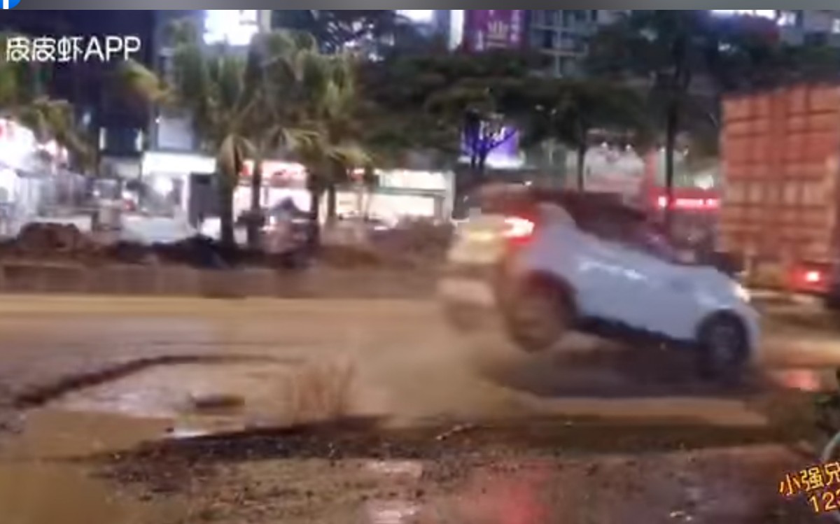 Ειδικότερα, στο παρακάτω οπτικοακουστικό υλικό καταδεικνύεται μια μεγάλων διαστάσεων λακκούβα, καλά καμουφλαρισμένη από την έντονη νεροποντή. Οι οδηγοί αδυνατούν να την παρατηρήσουν έγκαιρα, μ’ αποτέλεσμα να υποβάλλουν το αυτοκίνητό τους σε μια εφιαλτική εμπειρία.