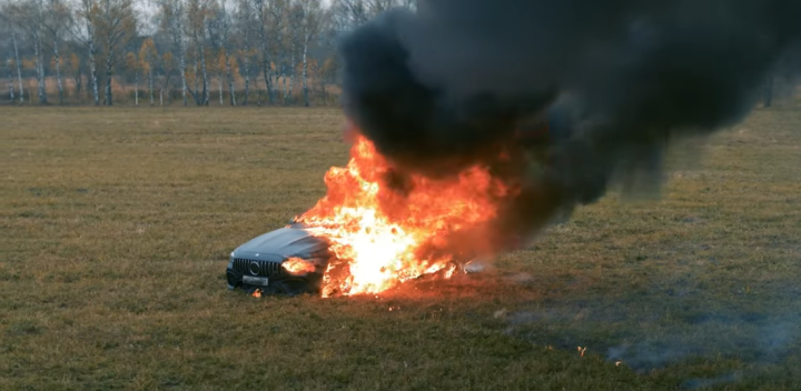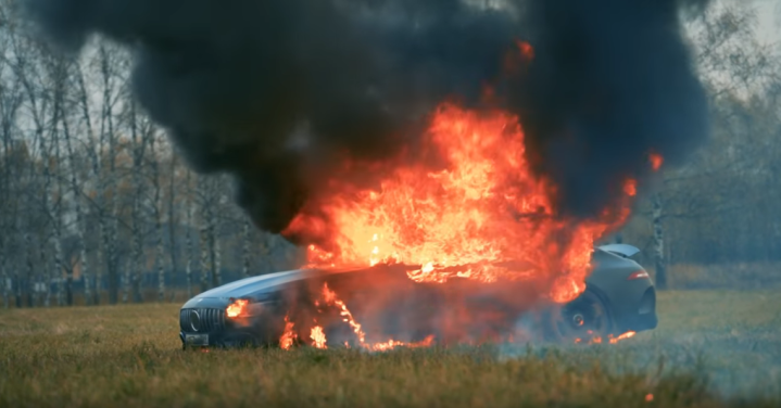 βάζει φωτιά και καίει ολοσχερώς την πανάκριβη Mercedes AMG